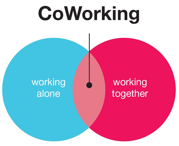 Los centros de coworking, destinados principalmente a profesionales de Internet, diseñadores, programadores, escritores, periodistas, etc., proporcionan, generalmente, un escritorio individual, acceso a Internet y otros servicios.
